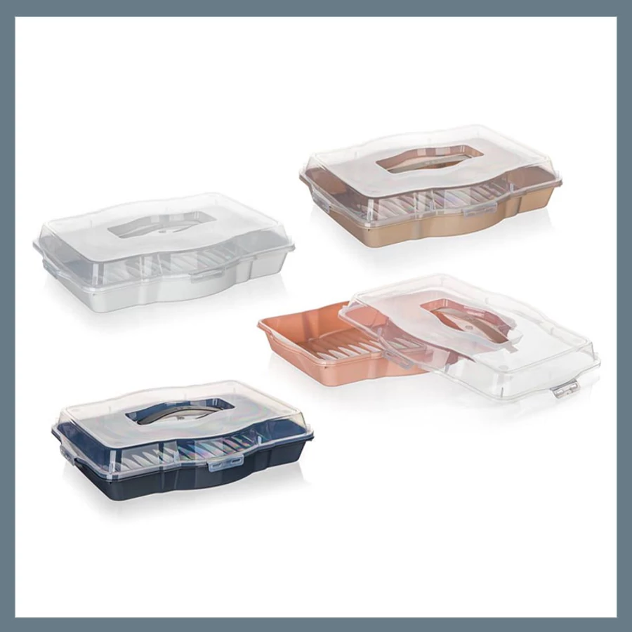 Praktický tác s víkem umožňuje snadné přenášení a uchování potravin v čerstvém stavu. Skvělý pomocník na pečení, oslavy i pikniky!