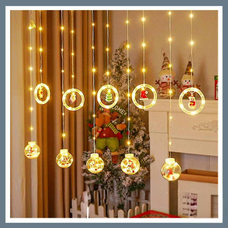 Vánoční koule + kruh 110LED osvětlená závěsná dekorace 3M teplá bílá